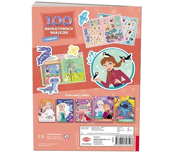 100 brokatowych naklejek książka zadaniami Kraina Lodu