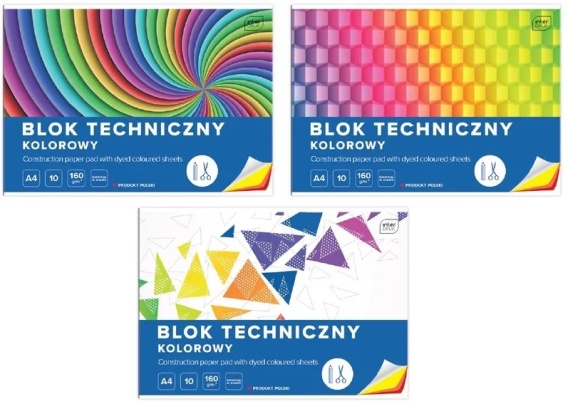 Blok techniczny A4 10 k 160g kolorowy INTERDRUK
