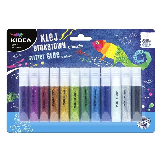 Brokatowy klej zestaw artystyczny KIDEA brokat 12 kolorów 6 ml