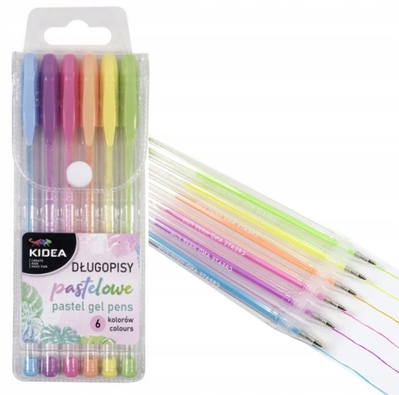 Długopisy w 6 wyjątkowych, pastelowych kolorach (niebieski, fioletowy, różowy, pomarańczowy, żółty i zielony).
