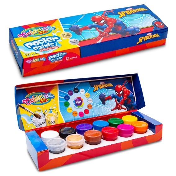 Farby plakatowe Colorino 20 ml 12 kolorów złota srebrna Spiderman