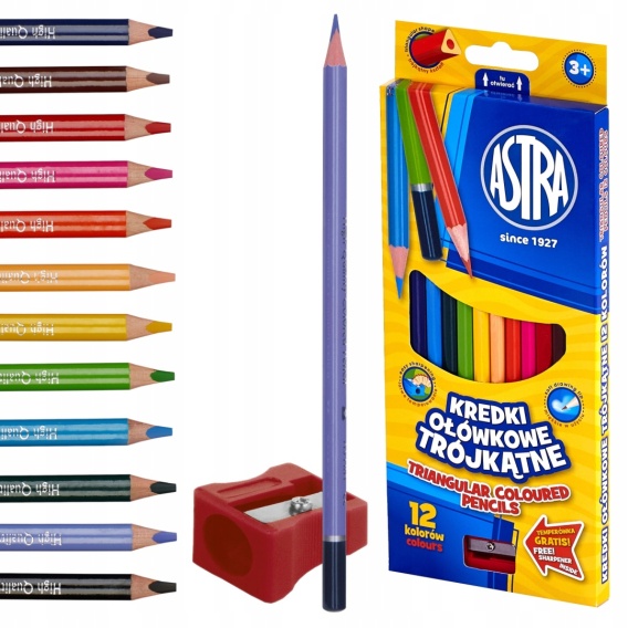 Kredki ołówkowe trójkątne 12 kol + temperówka Astra