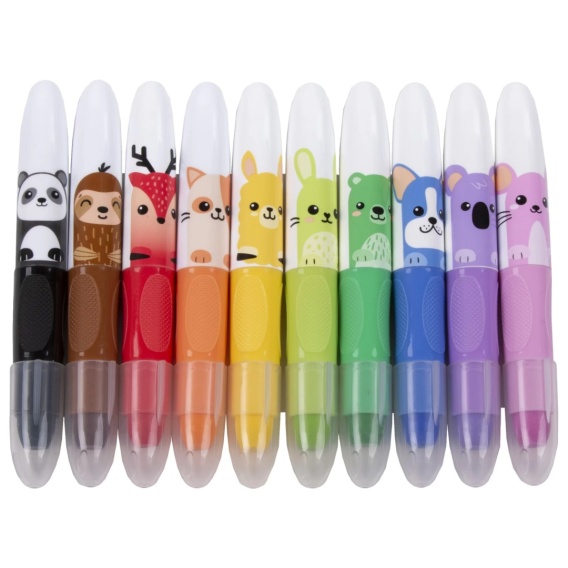 Kredki żelowe silk w pisaku wykręcane grube zwierzątka 10 kolorów