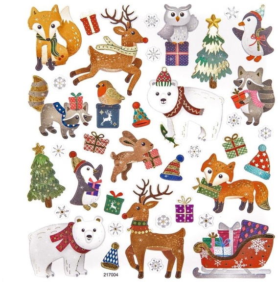 Naklejki – Zimowe zwierzaki, czapki, prezenty, sanie, lis, niedźwiedź polarny 38 szt.