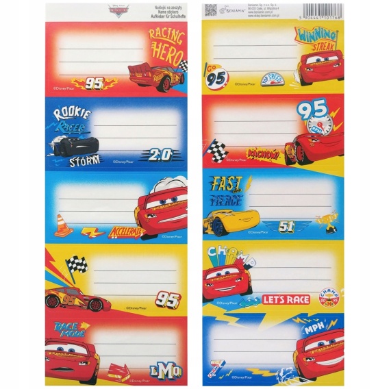 Naklejki nalepki na zeszyty 10 szt AUTA ZYGZAK MCQUEEN