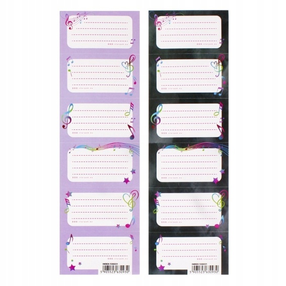 Naklejki nalepki na zeszyty 12 szt muzyka nuty