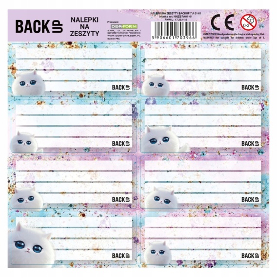 Naklejki nalepki na zeszyty 16 szt Backup słotkie puchate kotki kot