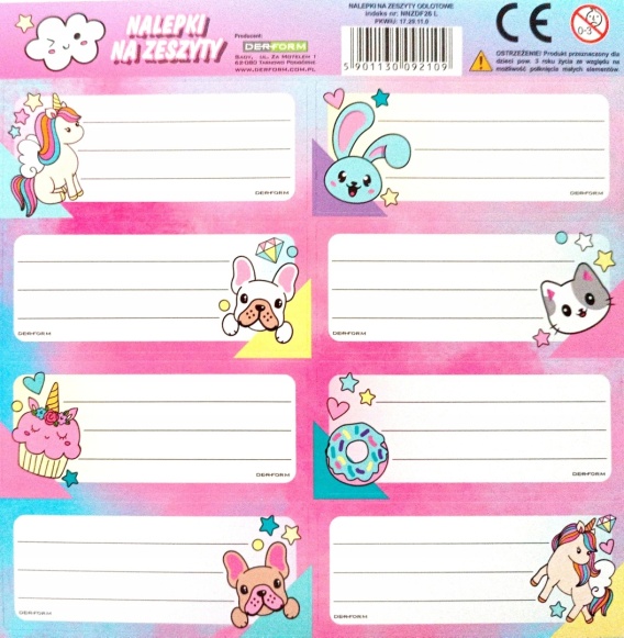 Naklejki nalepki na zeszyty 8 szt słodziaki kotki pieski jednorożce