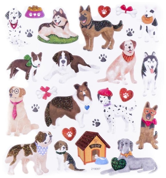 Naklejki z brokatem - Psy, pies pieski owczarek, bernardyn, dalmatyńczyk27 szt.
