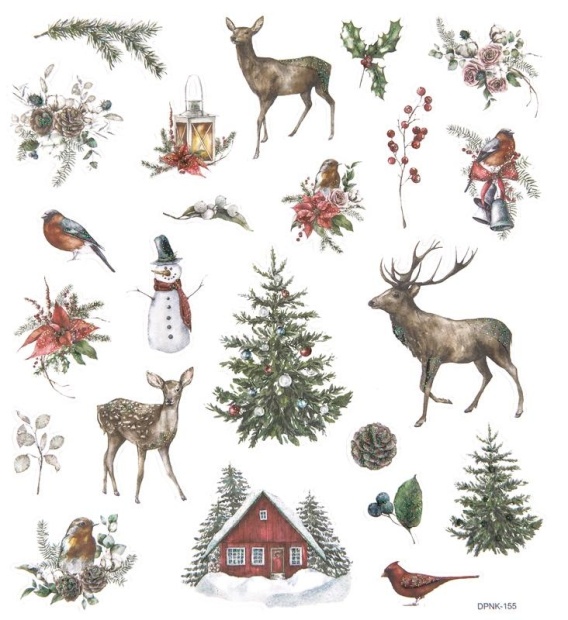 Naklejki z brokatem Zima świąteczne ptaki sarenki ośnieżone gałązki 23 szt