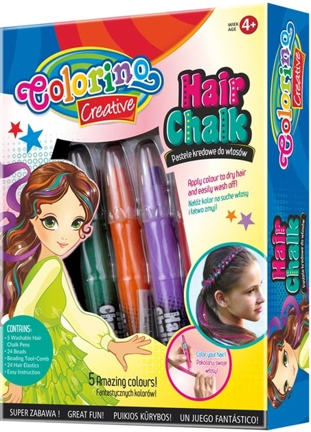Pastele kredowe kredki kreda do włosów koraliki gumki Colorino