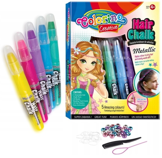 Pastele kredowe kredki kreda do włosów koraliki gumki metaliczne Colorino