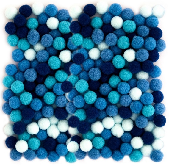 Pompony poliestrowe 1cm mix niebieskie, granatowe, białe 120 szt., Dp Craft