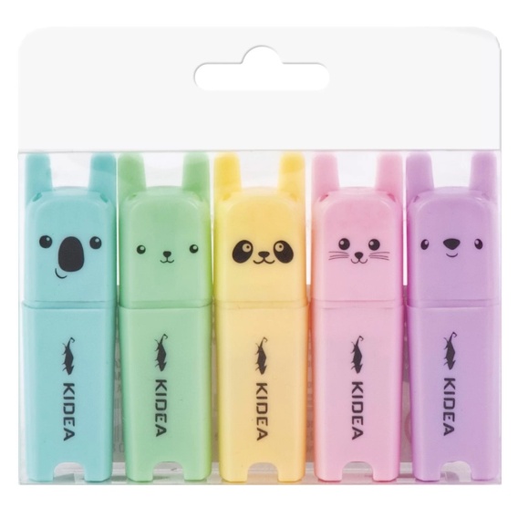 Zakreślacze mini pisaki pastelowe 5 kolorów zwierzaki Kidea