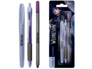 Zestaw 3 el długopis cienkopis zakreślacz Wednesday Addams