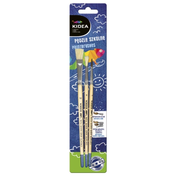 Zestaw 3 szt pędzli pędzelek KIDEA naturalne włosie 4 6 12