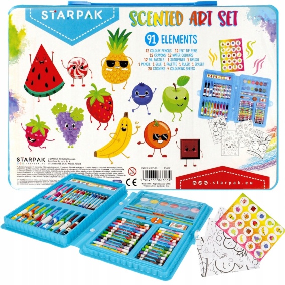 Poręczny zestaw artystyczny zapachowy, który idealnie mieści się w dziecięcym plecaku. Zestaw zapachowy STARPAK dla małych artystów pomagający rozwijać im kreatywność i poznawać nowe techniki malarskie. Jeżeli szukasz artykułów plastycznych dla swojego dziecka to jest to idealny zestaw dla Twojego dziecka.