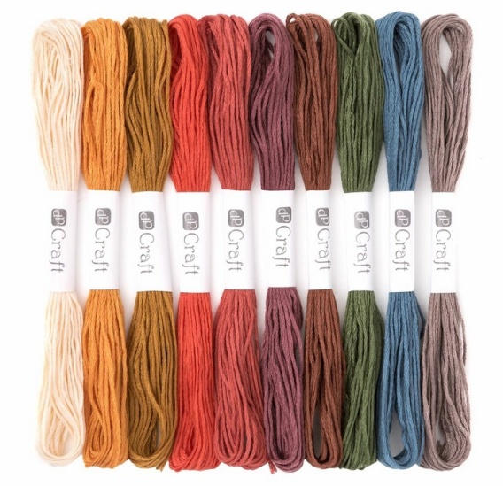 Liczba mulin w opakowaniu: 10 szt. Długość pojedynczego motka muliny: 8 m Kolory: beżowy szary, petrol, butelkowa zieleń, czekoladowy, burgundowy, karminowy, karmazynowy, cynamonowy, ochrowy, écru