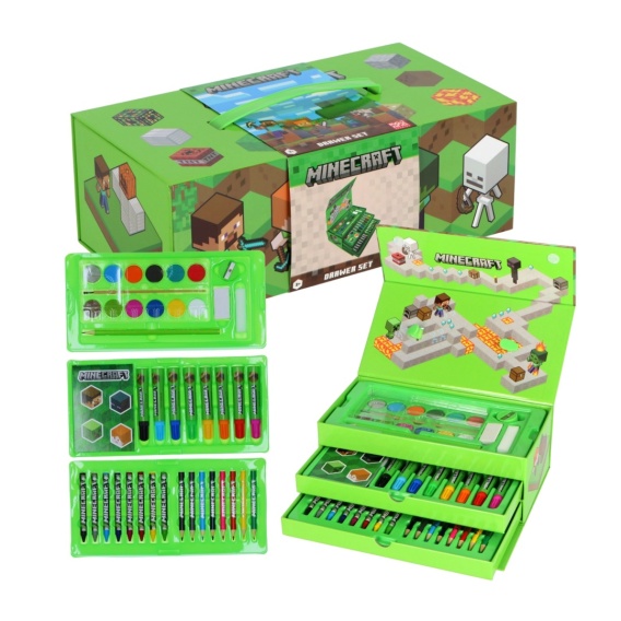 Kolorowa walizka z szufladką pomoże w rozwijaniu sprawności ręki dziecka oraz przygotuje do nauki pisania, z motywem Minecraft