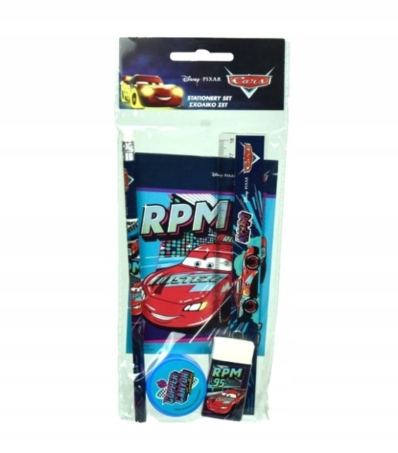 Zestaw szkolny 5el ołówek linijka notes temperówka AUTA ZYGZAK