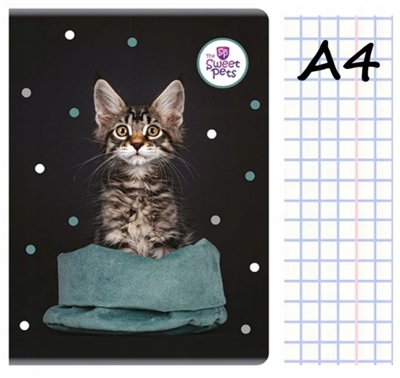 Zeszyt A4 w kratkę 60 kartek z marginesem kot kotek kociak czarny